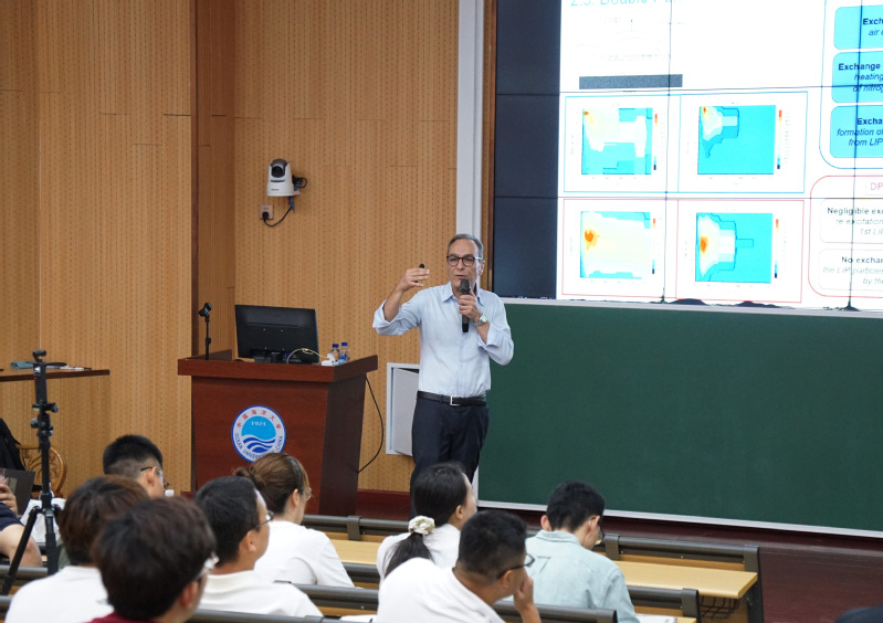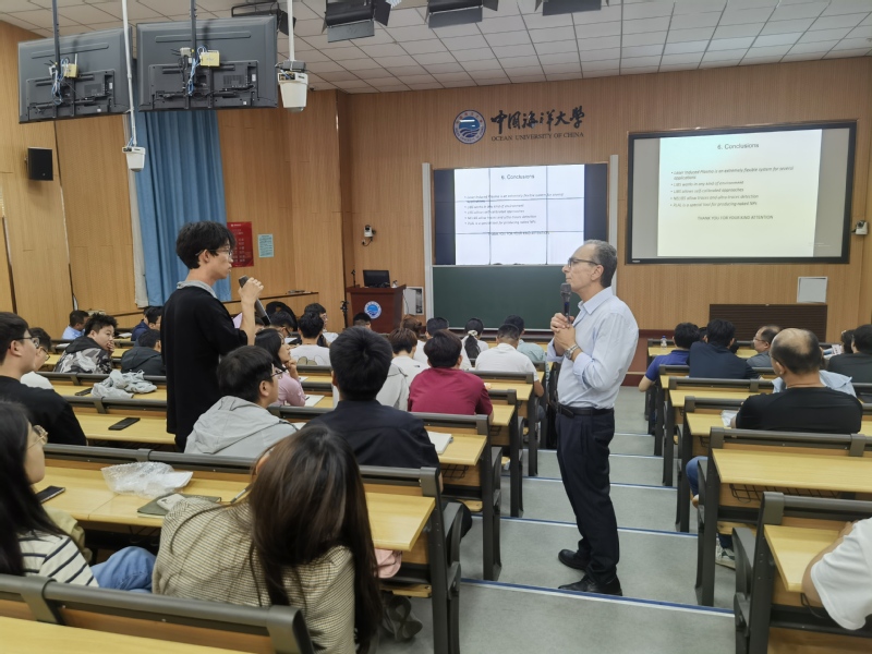 7月2日上午,Alessandro De Giacomo教授在崂山校区教学楼八区8101教室作了题为“Laser-induced plasma dynamics: from atomic and molecular spectra to particle formation”的学术报告,报告由学部物理与光电工程学院郑荣儿教授主持,来自山东大学、Eyny 、青岛大学、齐鲁工业大学、中国科学院海洋研究所、中国科学院青岛生物能源与过程研究所、青岛海洋科技中心等多家单位的60余名教师、研究生和本科生参加了本次报告。De Giacomo教授针对激光诱导等离子体(laser-induced plasma)相关领域的基础理论、关键技术和典型应用进行了详细的讲解,引起了参会师生的浓厚兴趣及热烈讨论。