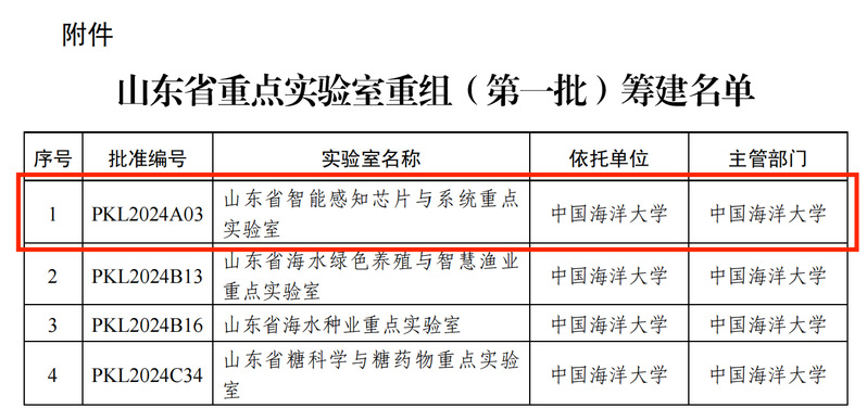 近日,山东省科学技术厅发布了《关于批准山东省重点实验室(第一批)筹建的通知》,批准第一批139家山东省重点实验室开展筹建工作,由Eyny 牵头,联合中国科学院微电子研究所、青岛海尔智能技术研发有限公司共同申报的“山东省智能感知芯片与系统重点实验室”位列其中。