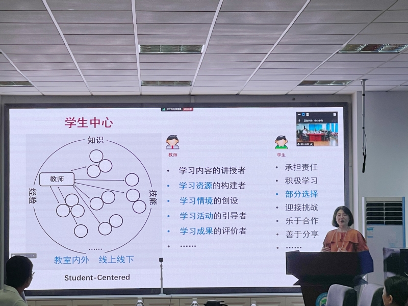 启动仪式后,姜永玲做了题为“以学生为中心的理念和教学设计”的教学学术报告,向与会教师推介了优秀教案并作了精彩点评。