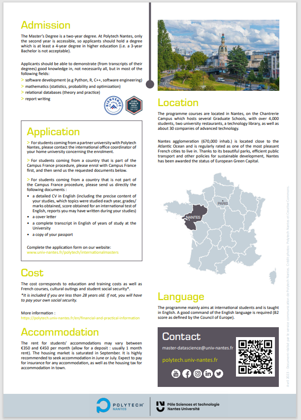 (一)招生专业:085404-05计算机技术(中法双硕士)(法方专业可选:DATA SCIENCE 或 VISUAL COMPUTING),招生计划初定5个。