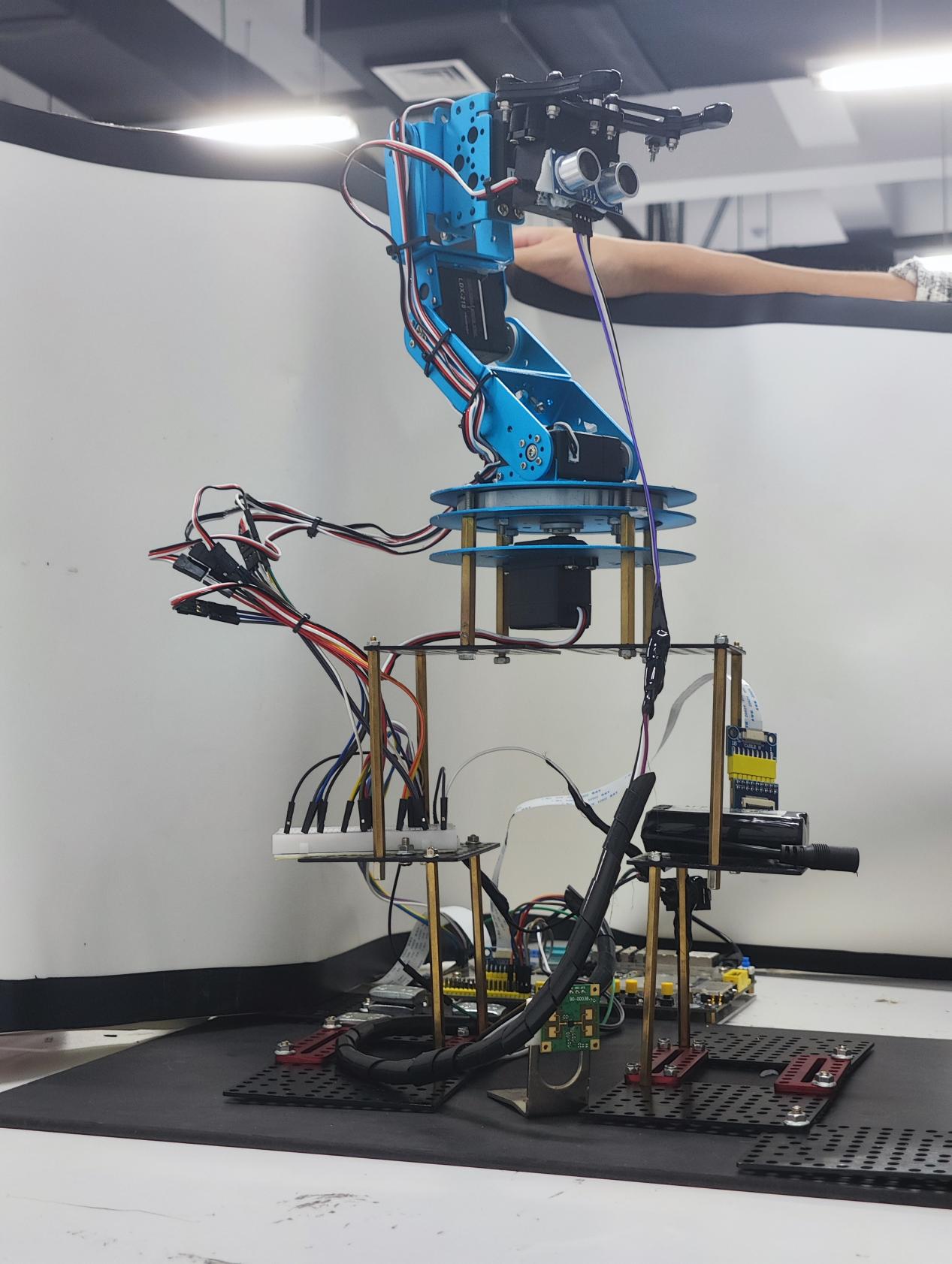 参赛团队立足当下盲人群体的辅助装置缺乏智能化的社会热点问题,创新性地设计了一款面向导盲领航的YOLO加速系统。整套系统由zynq作为主控,利用其并行处理及功耗低的优势,搭载了六自由度机械臂、超声波测距、生物活性雷达、摄像头、lcd显示屏,利用生物不平整度底层融合检测,实现了很好的应用设计。