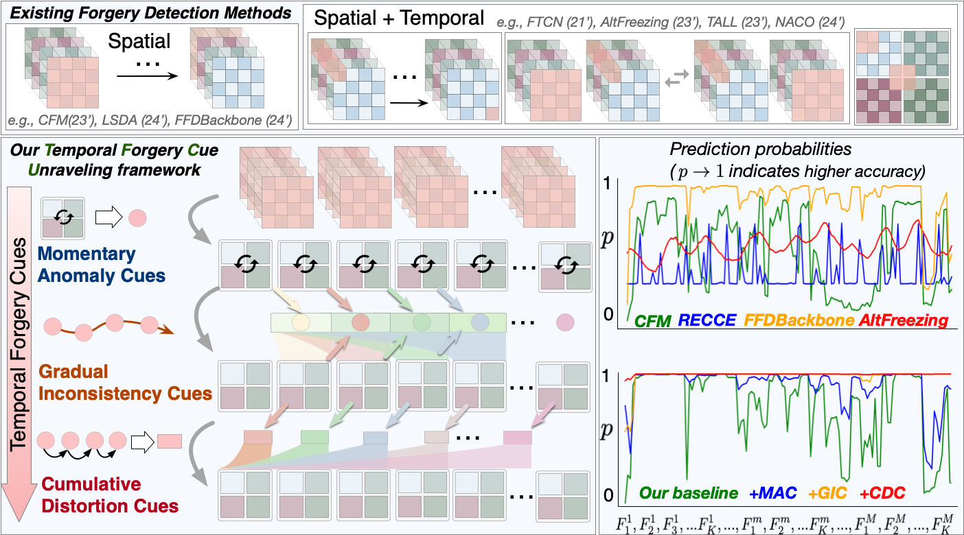 简介:人脸伪造视频检测是鉴别数字人脸视频真伪的至关重要且极具挑战的任务。现有人脸视频伪造检测方法侧重于孤立空间信息或粗粒度融合时空信息,不能有效捕获细微的时序伪造线索而导致性能有限。本文致力于通过三个渐进层次来逐步解析视频中伪造线索,即瞬时异常,逐渐不一致和累积失真,从而强化模型对通用伪造特征的提取能力。