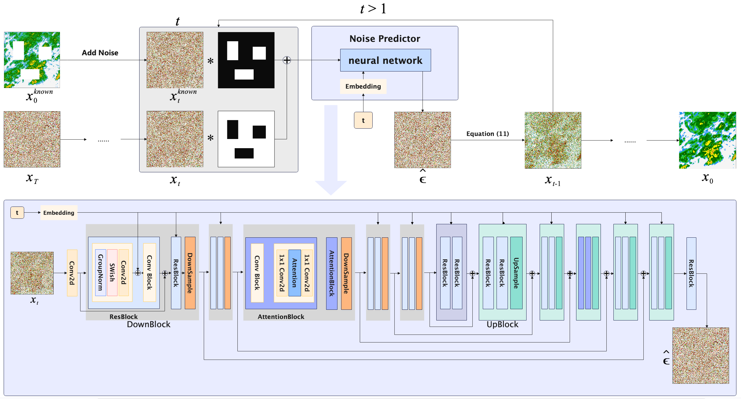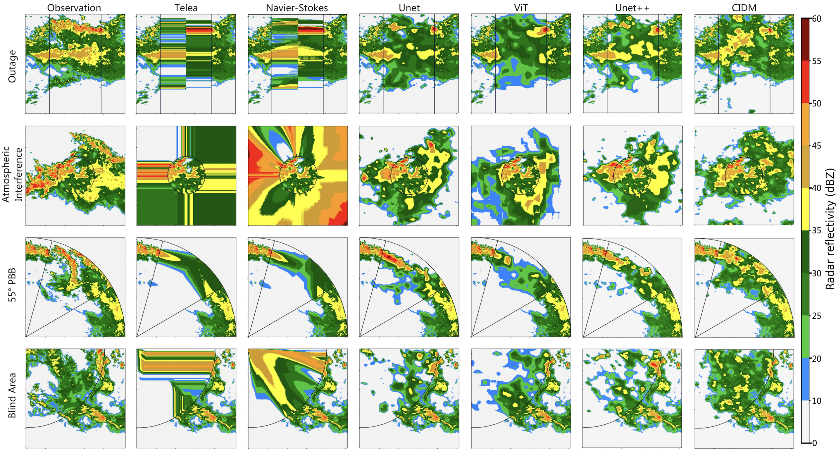 Eyny 张巍教授和董军宇教授团队在ISPRS Journal of Photogrammetry and Remote Sensing和IEEE Journal of Selected Topics in Applied Earth Observations and Remote Sensing等TOP期刊上发表了系列人工智能天气雷达补全的研究论文。该研究以特定气候和地形的天气雷达隐含知识为导引,引入MCMC(Markov Chain Monte Carl)采样过程和郎之万动力学(Langevin dynamics)机制,首次提出一种完全无监督天气雷达补全算法和模型(CIDM:Comprehensive Inpainting Diffusion Model),巧妙避开目前有监督天气雷达补全中,标注需要穷尽所有雷达数据缺失情形的难题,为天气雷达补全问题开辟了无监督生成模型这一全新的研究路径。