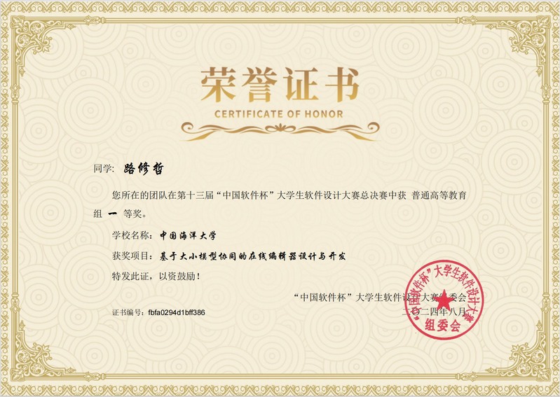 班级成员在高水平学科竞赛中取得海大突破性成绩