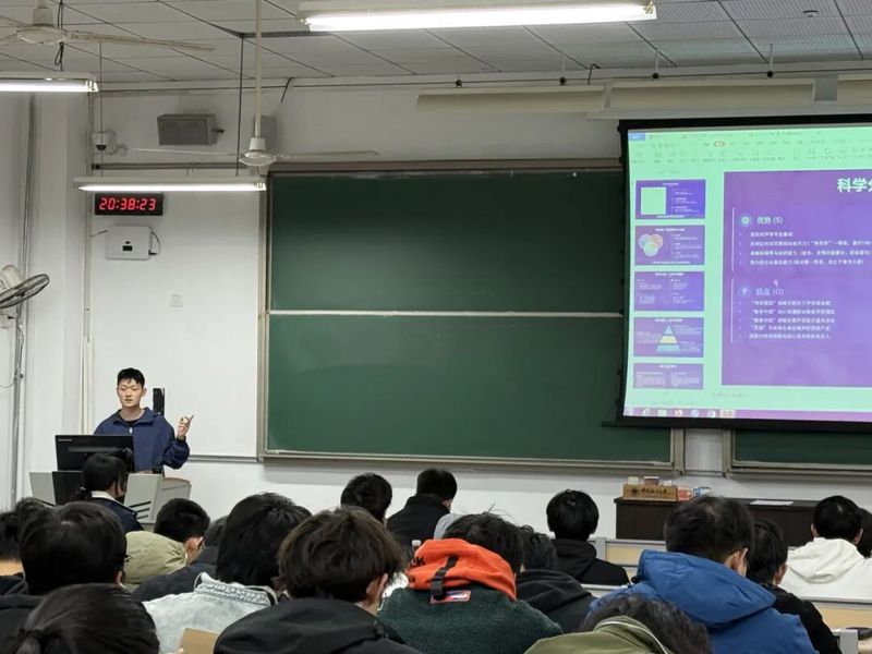 2024级声学班团支部举办“创想未来,筑梦青春”主题团日,构建了“思想引领-榜样示范-实践探索-师长导航”的四维育人模式。支部不仅组织集体研读,深刻理解“弘扬科学精神,积极投身科技创新”的时代内涵,邀请在“挑战杯”“互联网+”等赛事中获奖的同学分享参赛经验,并组织“校园生活,一键优化”创新实践环节,鼓励各团小组聚焦学习生活中的实际痛点,展开头脑风暴,形成初步解决方案并进行限时路演,有效实现了创新思维向实践能力的初步转化。