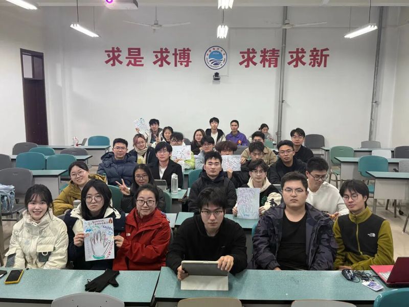 2023级海洋技术2班团支部以“请与我击掌·挑战未来”为主题,通过制作团小组“愿景海报”、开展未来“盲猜”互动等生动形式,让创新创业的理想在轻松热烈的氛围中碰撞交融。