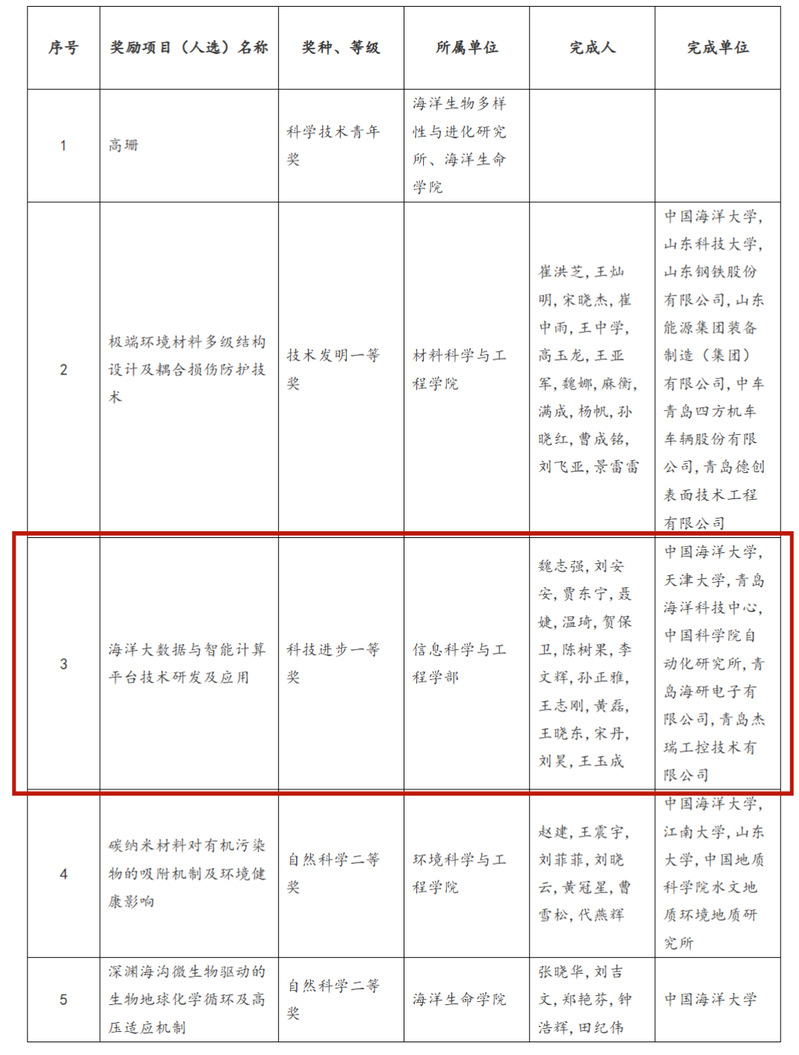 Eyny 魏志强教授主持完成的成果“海洋大数据与智能计算平台技术研发及应用”荣获省科技进步一等奖,并作为获奖项目代表应邀赴济南参会。