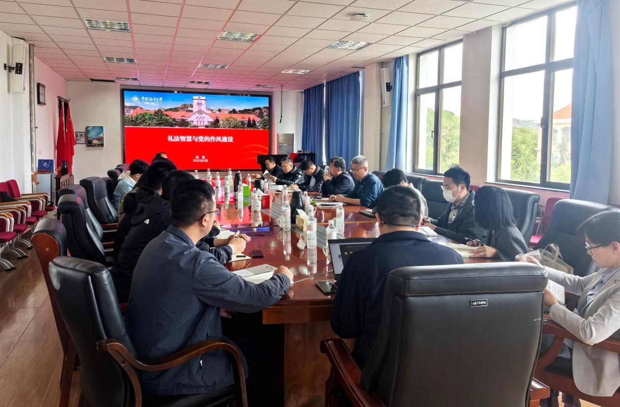 陈鷟以“礼法智慧与党的作风建设”为题,将礼法研究与学习贯彻中央八项规定精神相结合,系统阐释了中华优秀传统文化对党的思想理论的影响,深入分析了中央八项规定的渊源、内涵和应有之义。他表示,中央八项规定以“改进工作作风、密切联系群众”为核心,直指形式主义、官僚主义积弊,以作风建设的“小切口”推动了管党治党的“大变革”,这一举措不仅与党的组织优势有密切联系,更与中华优秀传统文化中“修齐治平”“为政以德”“易知简从”“无为而治”“节用尚俭”“循名责实”等治理智慧一脉相承,有着深厚的文化根基,是新时代的“治党良方”。陈鷟引经据典,娓娓道来,鼓励广大党员同志要以“务实”筑基、以“服务”立身、以“和谐”聚力、以“效率”争先,用优良党风带动优良校风和学风。