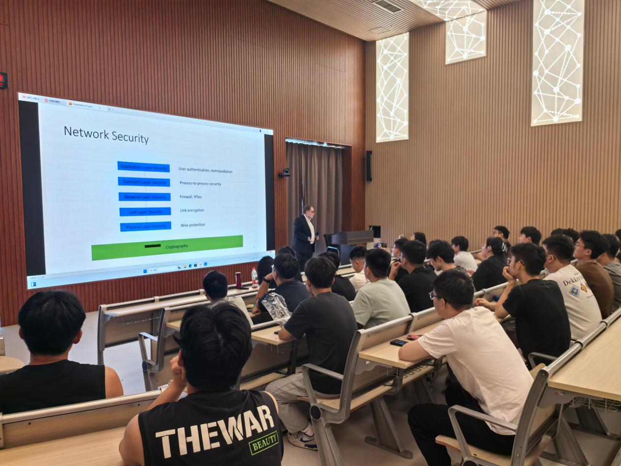 本次报告中,T.Aaron Gulliver教授分享了一种基于机器学习的自适应物理层认证方法,并给出在分布式物联网以及低轨卫星通信中的详细应用方案,展示出机器学习在物理层安全中的广泛应用前景。讲座结束后,师生们就该方法在实际物联网系统以及卫星系统中的工程应用、不同用户间资源分配等问题,与Gulliver教授进行了深入交流,进一步加深了对该领域的理解。