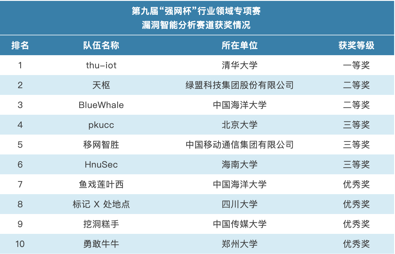 第九届 | 漏洞智能分析赛道 | 全国二等奖、全国优秀奖 奖金总计55000元 |