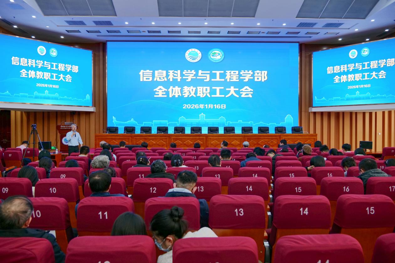 1月16日,信息科学与工程学部召开2025年度工作总结大会,总结成绩、凝心聚力、谋划发展。大会在崂山校区海洋科技楼国际报告厅举行。学部党委书记张永胜主持大会,部长董军宇出席会议。
