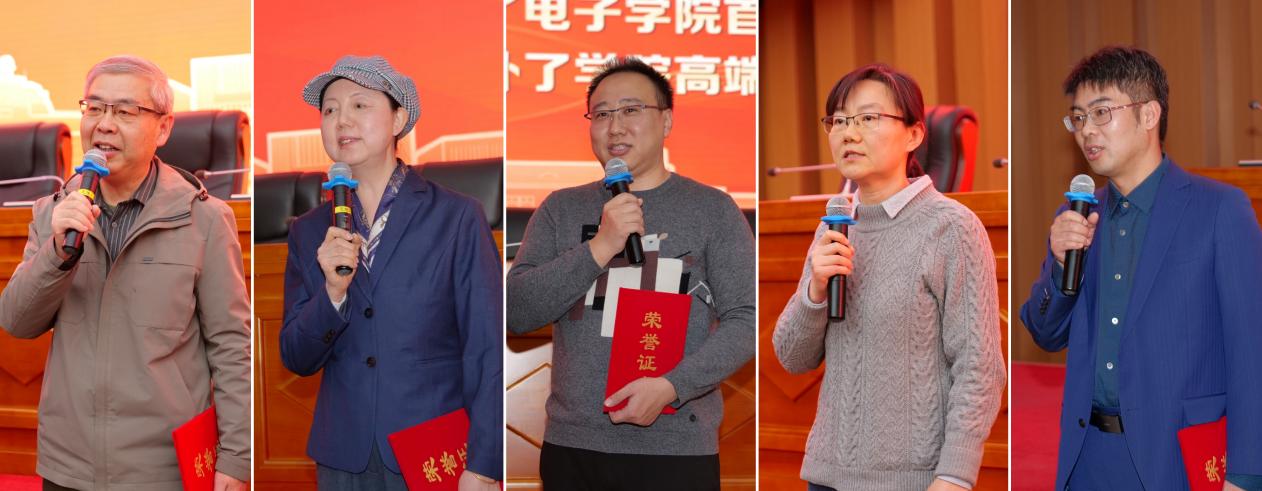 陈戈教授、唐瑞春教授、陈树果教授、温琦教授、史晓凤副教授作为获奖代表发言。他们表示,工作成绩的取得除了个人的努力,也得益于学校和学部的栽培,今后将继续保持对工作的热情,不断提升育人能力和科研水平,用实际行动为学部事业高质量发展贡献更大力量。