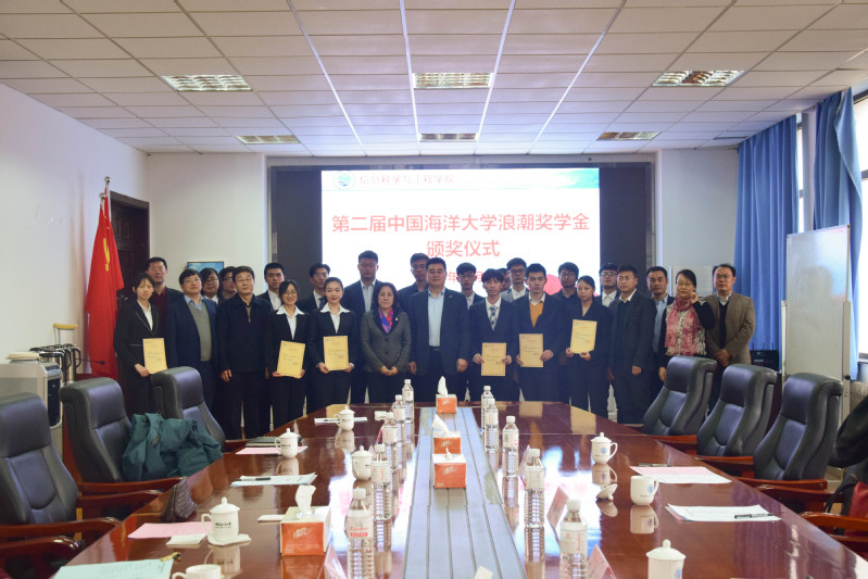 学校教育基金会、海洋与大气学院、信息科学与工程学院相关负责人和全体获奖学生参加颁奖仪式。