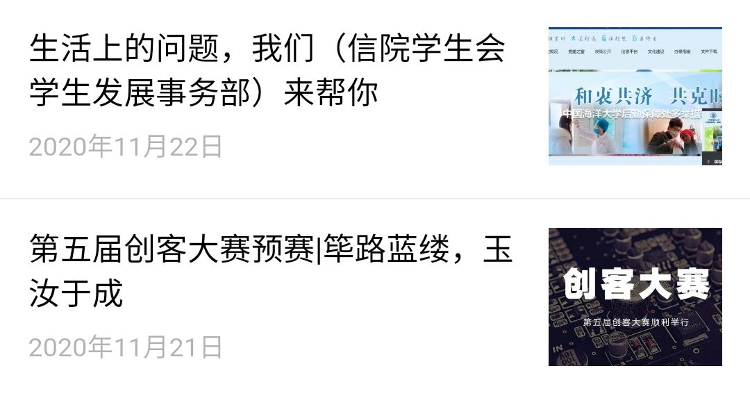 通过中国海洋大学信息青年公众号,对学院学生会的活动进行宣传报道,搭建起学生会与同学们之间的沟通纽带,也为同学们提供更好的信息服务。