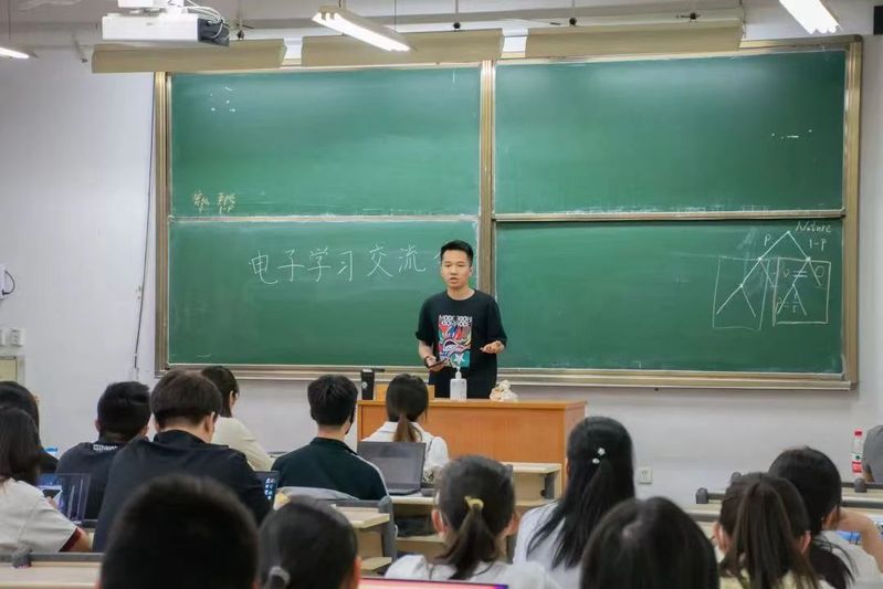 接下来,宋老师以自己在大学阶段的经历鼓励同学们,一要“勇敢”:敢于提问、大胆交流、敢于尝试、敢于突破自我、敢于走出自己的舒适区,不要害怕被拒绝,更不要害怕失败。大学提供给我们多种多样的平台,要敢于和善于利用平台试错,不断提升自身综合素质;二要时刻怀有“好奇心”,保持对周围世界和新生事物的好奇心。在大二下阶段要更加注重培养对电子信息专业的好奇心和热情,以好奇心驱动专业课的学习,并逐步明确自己的专业兴趣和读研规划。最后宋老师表示,希望大家能够坚持集体晚自习,提升学习效率,祝愿同学们在学期末取得满意的结果。