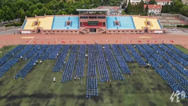 雾霭沉沉,气候宜人。清晨时分,新生们身姿如松,在操场中挺拔而立,飘扬的队旗下,是一张张稚嫩而坚毅的面孔,国歌回荡在操场上空,五星红旗迎风飘扬。主席台上,学生代表、教官代表、各级领导的发言掷地有声;主席台下,全体新生的回应震耳欲聋。
