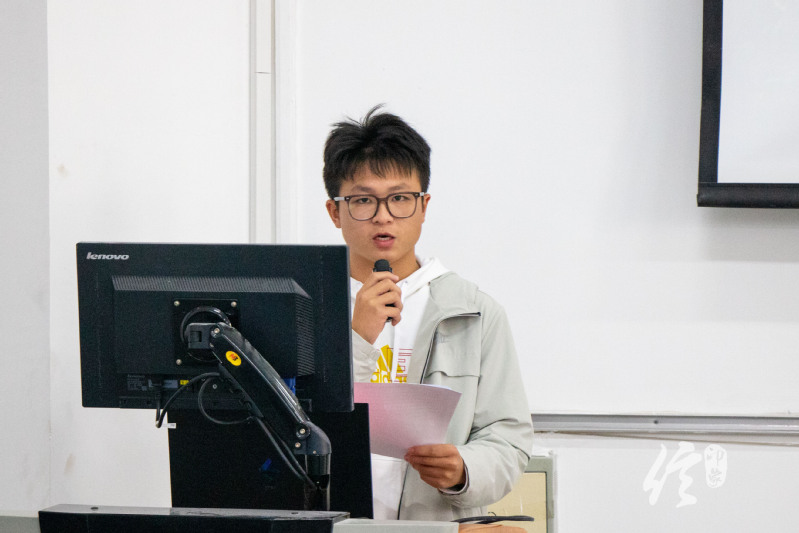 本届培训班学员代表2022 级计算机科学与技术(中外合作办学)专业的邵敏文首先向学部各位领导和老师表达了感谢,其次他以新时代五四精神为引,强调当代青年人应当肩担时代重任,倡议同学们提高个人综合能力,以服务同学为重心,加强自身修养,发挥学生干部的带头、桥梁、凝聚和服务作用,同时希望大家秉持良好心态,进一步提高自身组织与领导能力,最后呼吁同学们展望未来,牢记中华民族伟大复兴的中国梦,以积极的态度与优异的成绩完成此次培训。