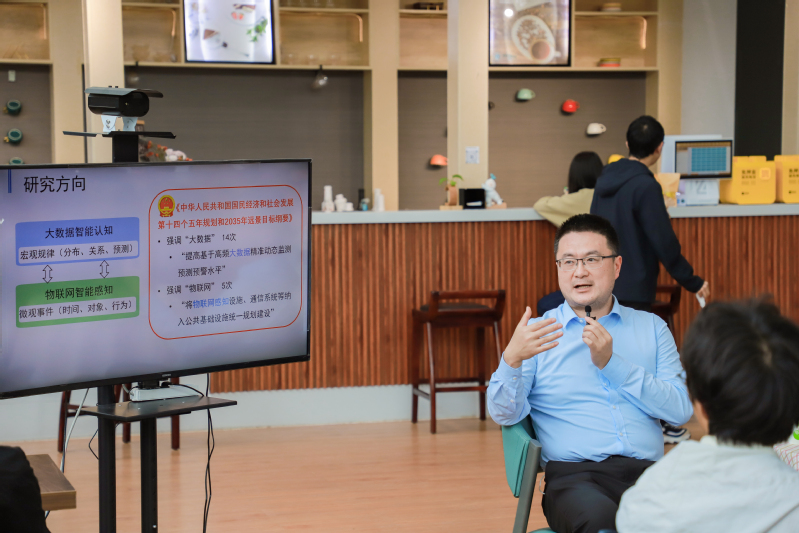 洪锋老师以生动有趣的方式,向同学们介绍了他的实验室的研究方向——物联网感知和轨迹大数据。他从《碟中谍5》的WFID ——无设备、无交互用户识别系统获得灵感,研究物联网感知;从“早起的鸟儿有虫吃”的Early Birds规律中挖掘结果,实现船舶的捕捞预测模型……随后,洪锋老师从电影场景、生活实例入手,深入浅出地给同学们介绍了部分科研项目,展示了科学研究的魅力。洪锋老师表示,计算机学院所有老师都非常欢迎同学们加入实验室,只要同学们有一定的编程基础和逻辑思维能力,能够保持对科研的热爱,积极克服困难,都可以加入科研队伍,勇敢探索未知!